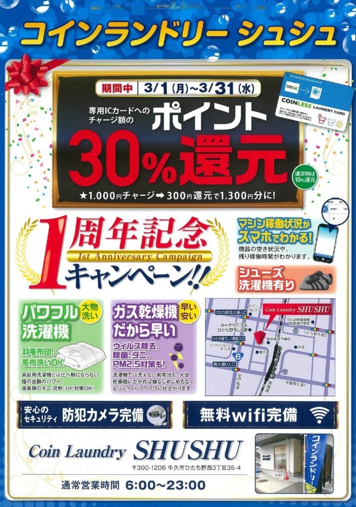 茨城県牛久市でコインランドリー様よりポスティング配布のご依頼いただきました!配布料3.9円~1周年記念