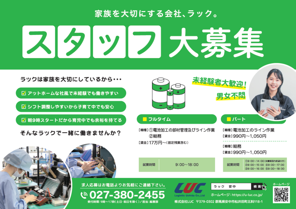 こんにちは!みらいポスティングスタッフです😁 群馬県安中市で電池加工会社様よりポスティングのご依頼を頂きました! 〇お客様情報(敬称略) 株式会社LUC 住所:群馬県安中市松井田町五料118-1 お問い合わせ先:0273 …