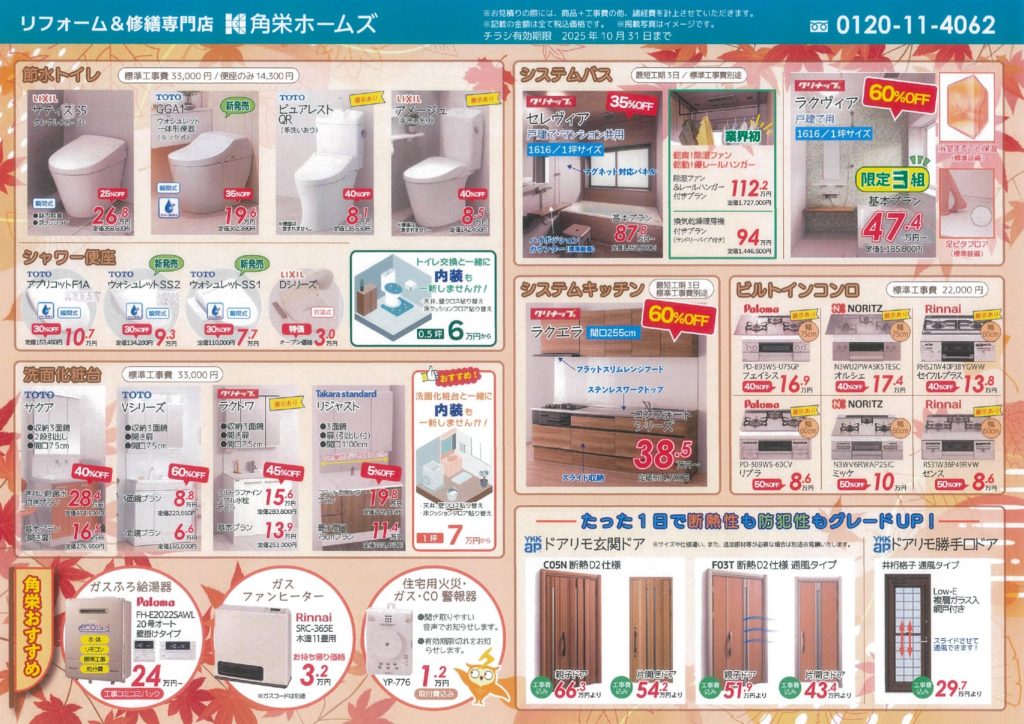 チラシ内容:イベントのご案内・各種リフォームサービスのご案内