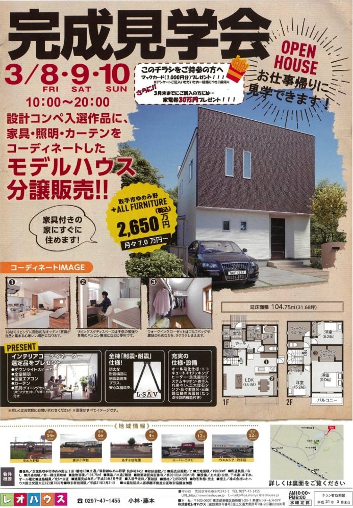 チラシ内容:完成見学会(モデルハウス分譲販売)
