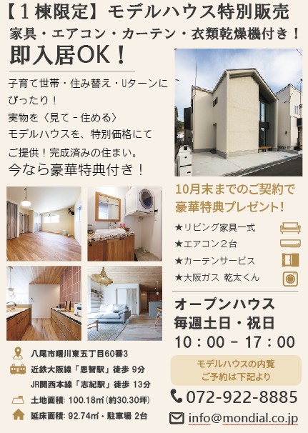 大阪府八尾市で建築会社様よりポスティングのご依頼をいただきました!モデルハウス販売のご案内