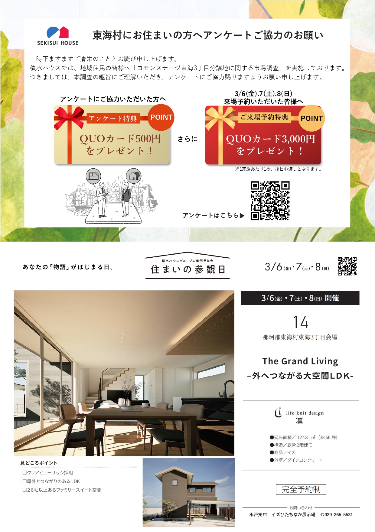 チラシ内容:実例見学会、分譲地のご案内