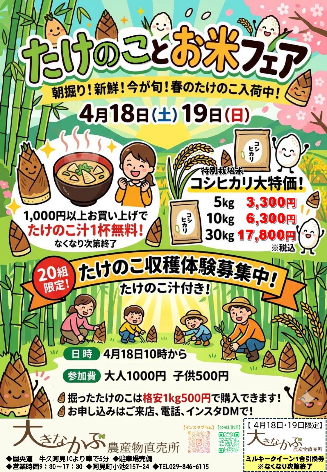 茨城県阿見町、牛久市で直売所様よりポスティングのご依頼頂きました!たけのこフェアなどの告知