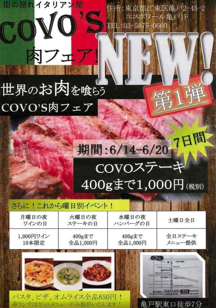 タグ: イベント, チラシ配り, チラシ配り 江東区, 江東区, チラシ印刷 江東区, チラシ印刷, チラシ配布業者 江東区, 飲食店, ポスティング 江東区, チラシデザイン業者 江東区, チラシ制作, 亀戸駅, 反響, イタリアン料理, 激安印刷, 街の隠れイタリアン屋 COVO’S, 集客, 東京都江東区亀戸2-45-2 エスポワール亀戸1F, 0358750660, ビラ撒き, ポスティング 印刷 江東区, ポスティング業者 江東区