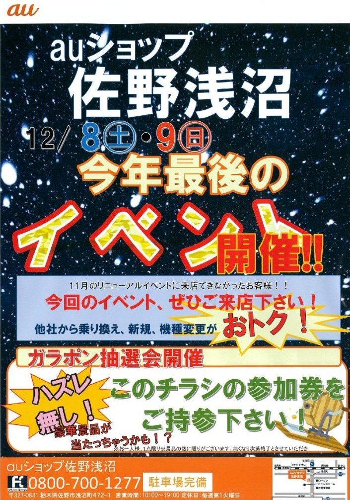 栃木県佐野市で携帯電話ショップ様よりポスティング配布のご依頼を頂きました!配布料4.9円〜イベント告知