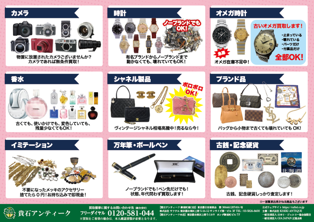 チラシ内容:無料鑑定イベントのご案内・買取商品のご紹介
