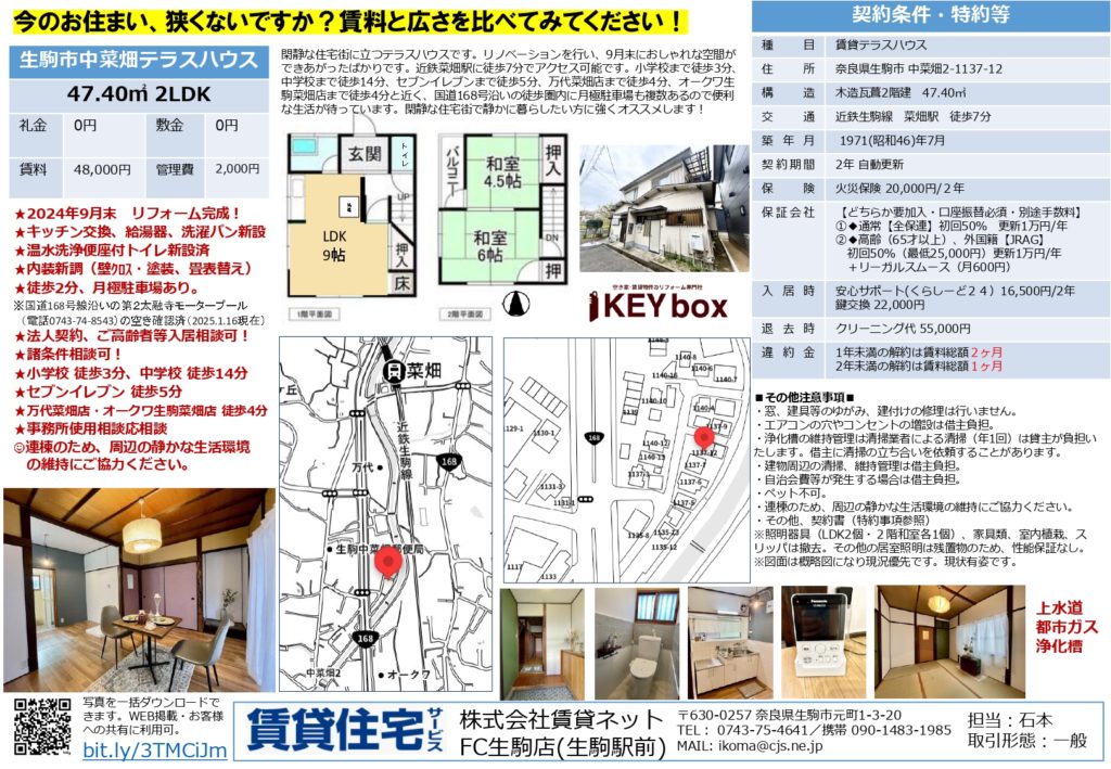 奈良県生駒市で不動産業者様からポスティングのご依頼をいただきました!物件のご案内