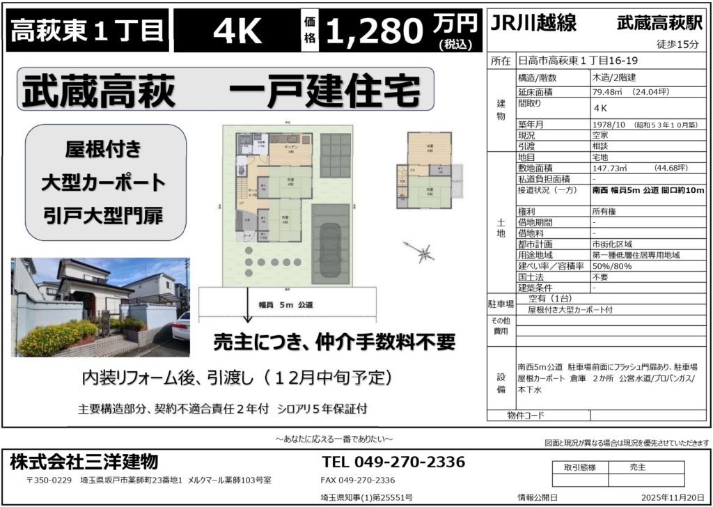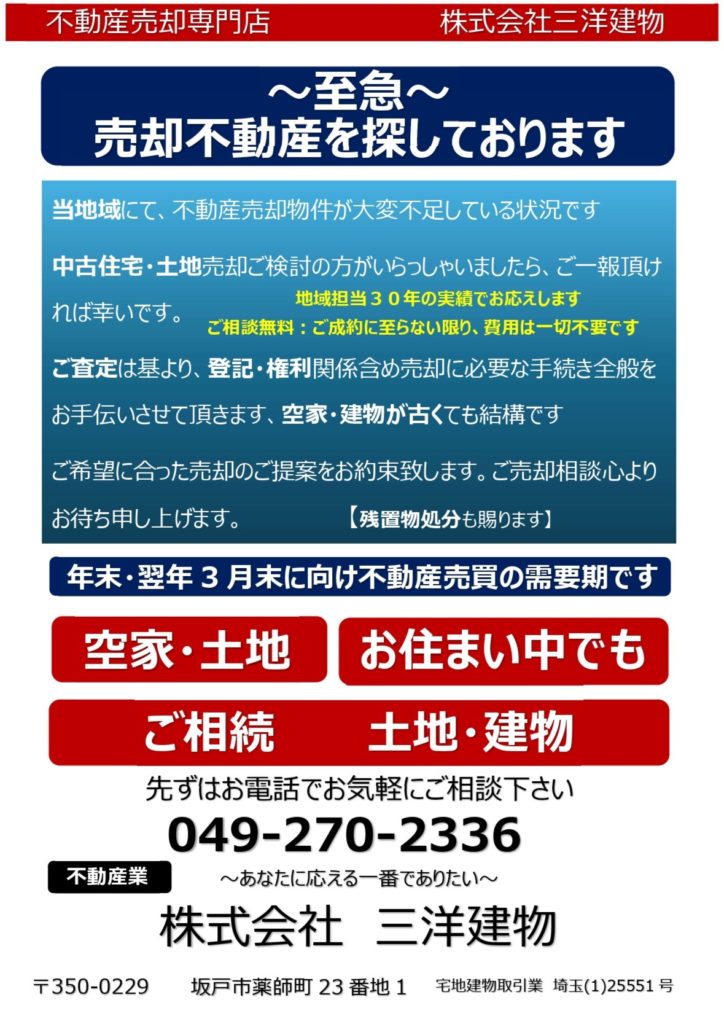 埼玉県日高市で不動産会社様よりポスティングのご依頼をいただきました!不動産物件についてのご案内