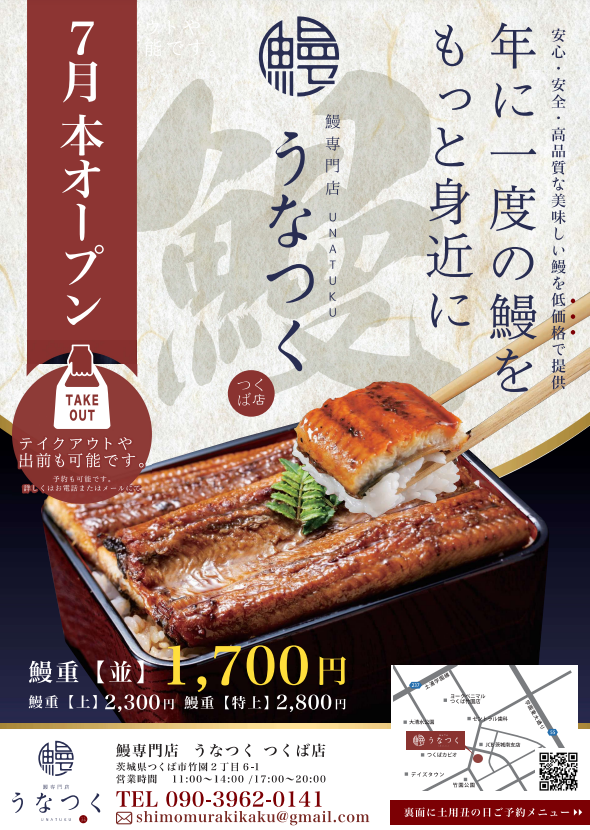 茨城県つくば市で鰻専門店様よりポスティングのご依頼いただきました!オープンのご案内