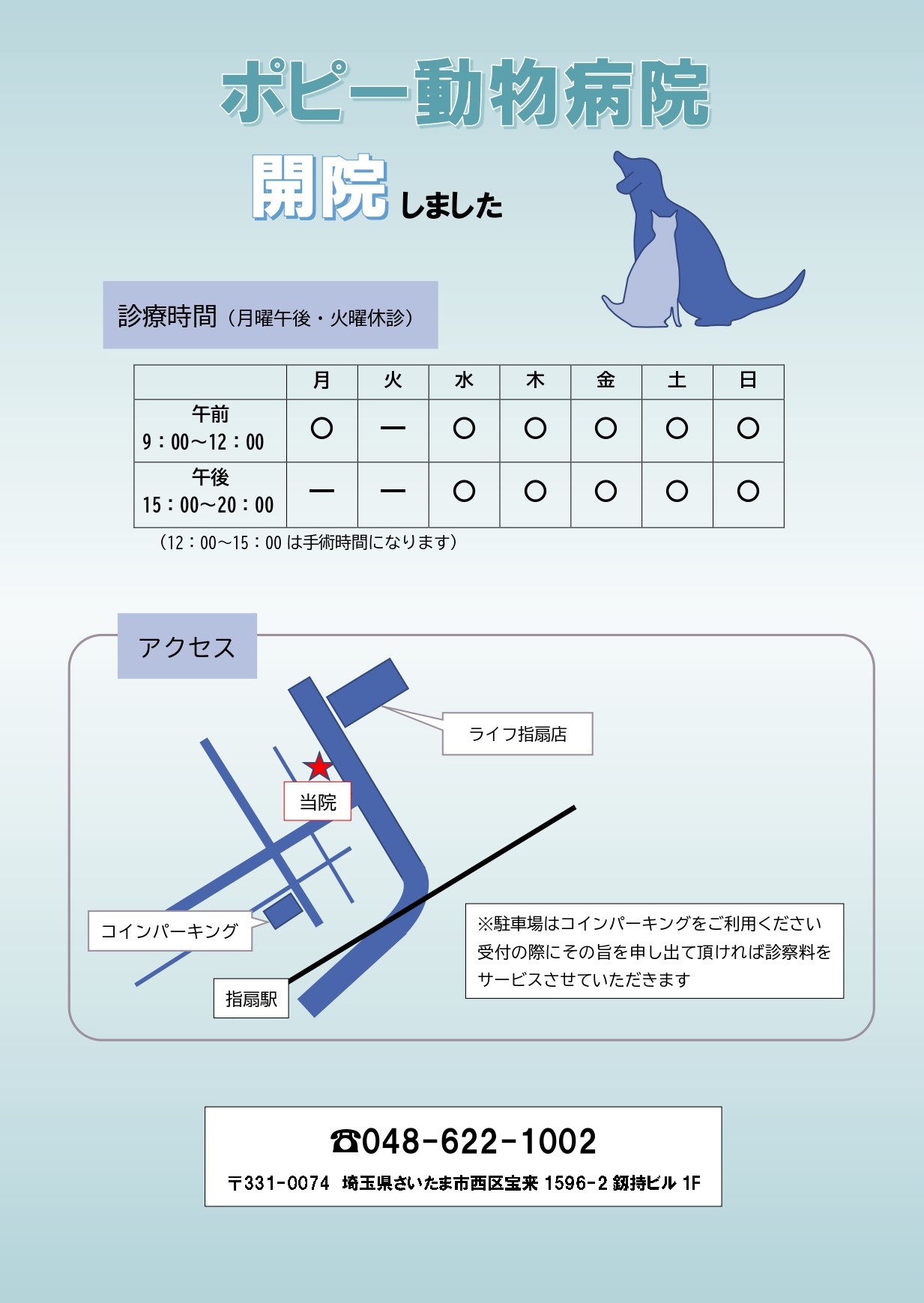 埼玉県さいたま市で動物病院様よりポスティングのご依頼を頂きました!配布料3.4円~新規開院の告知