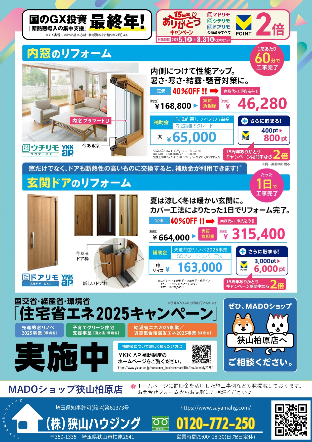 チラシ内容:リフォーム(窓・ドア)補助金のご案内