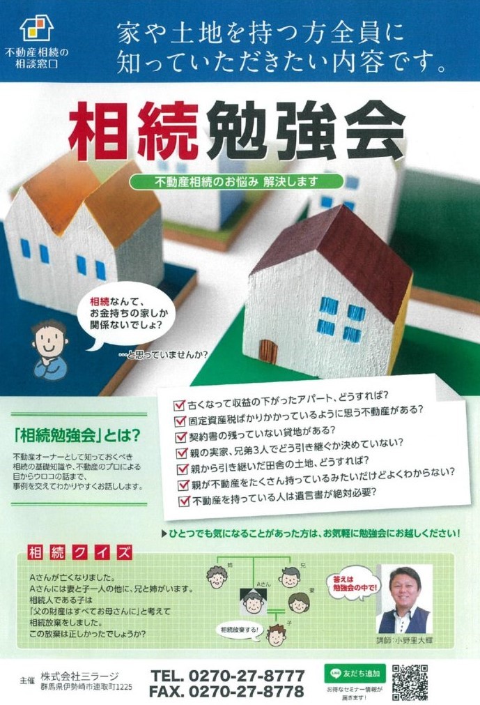 こんにちは!みらいポスティングです。 ◆実績のご案内◆ ポスティングエリア:群馬県伊勢崎市 サイズ:A4 印刷:両面カラー チラシ内容:相続勉強会のお知らせ 配布方法:戸建限定配布 相続の相談会の内容という事で、平均世帯 …