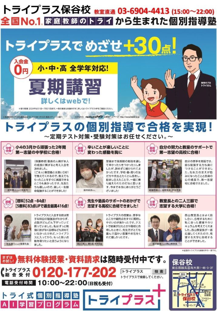 タグ: 個別指導塾 チラシ, 無料体験 練馬区, 無料体験, ポスティング 西東京市, トライプラス保谷校, ポスティング 印刷 西東京市, ポスティング 個別指導塾, 東京都練馬区南大泉1-48-3 2F, ポスティング業者 西東京市, 練馬区, チラシデザイン業者 西東京市, チラシ配り 西東京市, ポスティング 練馬区, 個別指導塾 西東京市, チラシ印刷 西東京市, ポスティング 印刷 練馬区, 無料体験 西東京市, 0120177202, ポスティング業者 練馬区, 個別指導塾, チラシ配り 練馬区, 集客チラシ, チラシ印刷 練馬区, 個別指導塾 広告, チラシデザイン業者 練馬区, 個別指導塾 集客, 個別指導塾 練馬区, 西東京市