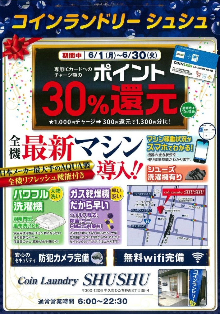 こんにちは、みらいポスティングスタッフです! 〇お客様情報(敬称略)コインランドリーSHUSHU(シュシュ)住所:茨城県牛久市ひたち野西3-35-4・チラシをご覧になってご興味がございましたら、ぜひご連絡(訪問)してみて …
