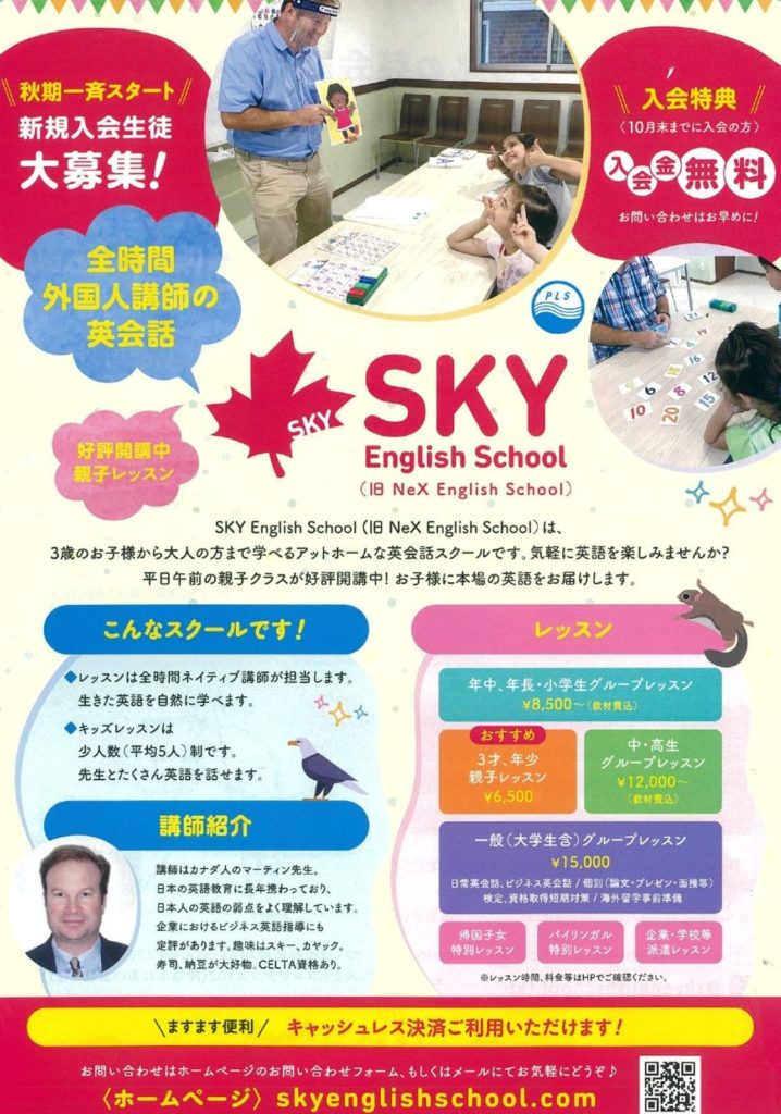 こんにちは(^_-)-☆みらいポスティングのスタッフです! 茨城県つくば市で英語教室様よりポスティングのご依頼を頂きました! 〇お客様情報(敬称略) SKY English School(旧 NeX English Sc …